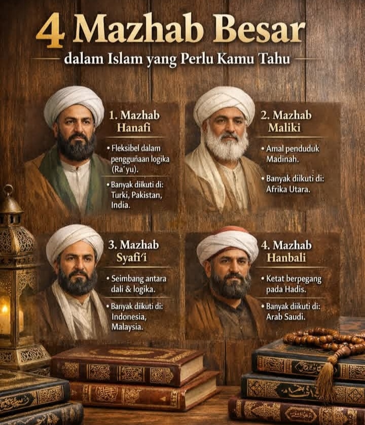 AKTAMEDIA.COM, JAKARTA – **🕌 4 Mazhab Besar dalam Islam yang Perlu Kamu Tahu** Tahukah kamu… Dalam Islam, ada **4 mazhab…