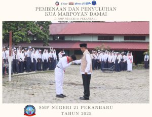 Dalam sambutan KA. KUA Kecamatan Marpoyan Damai Nurdeni, S.Ag menyampaikan pertama mengucapkan terima kasih kepada Kepsek SMPN 21 Pekanbaru Ibuk Hj. Efa Dewi, M.Pd dan seluruh majelis guru yang telah memberikan kesempatan kepada kami bisa melaksanakan kegiatan upacara dan juga sekaligus memberikan penyuluhan pembinaan kepada siswa-siswi SMPN 21 Pekanbaru.