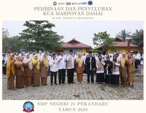 Turut dihadiri langsung oleh Kepsek SMPN 21 Pekanbaru Hj. Efa Dewi, M.Pd., Waka SMPN 21 Pekanbaru, Majelis Guru, serta rekan-rekan Penyuluh Agama Islam dan siswa-siswi SMPN 21 Pekanbaru.