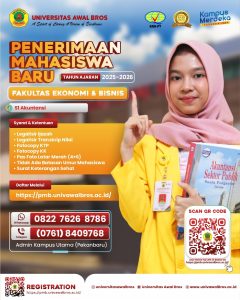 AKTAMEDIA.COM, PEKANBARU – Universitas Awal Bros kembali membuka kesempatan emas bagi calon mahasiswa baru yang ingin menempuh pendidikan tinggi di bidang ekonomi dan bisnis. Untuk Tahun Ajaran 2025/2026, kampus resmi membuka pendaftaran Program Studi S1 Akuntansi di bawah Fakultas Ekonomi & Bisnis.