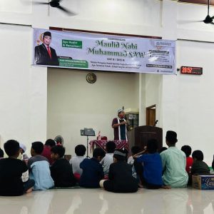 AKTAMEDIA.COM | Pekanbaru, Peringatan Hari Besar Islam (PHBI) Maulidurrosul Nabi Muhammad SAW tahun 1447 H/2025 M yang diadakan oleh Pengurus dan jama’ah Masjid Baitul Hijrah Kabupaten Kampar terlihat meriah. Sabtu malam Ahad 20/9/2025.