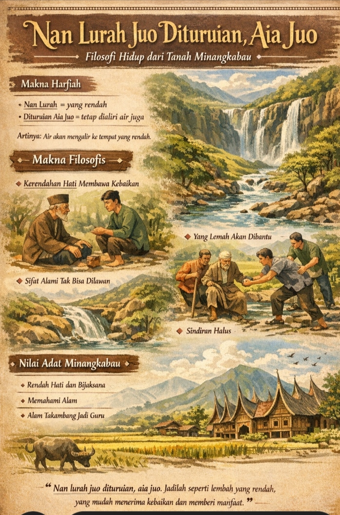 AKTAMEDIA.COM, PADANG – Pepatah Minangkabau “Nan lurah juo dituruian, aia juo” memiliki makna yang dalam dan bersifat filosofis. 🔍 Makna…